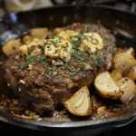 This Sizzling Cowboy Butter Steak Recipe is a bold, flavor-packed dish featuring juicy seared steak topped with a rich, zesty cowboy butter — a blend of melted butter, garlic, lemon, Dijon mustard, and fresh herbs that brings smoky, tangy, and savory notes to every bite.