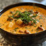 A rich and flavorful Creamy Chorizo Potato Soup made with spicy chorizo, tender potatoes, and a creamy broth — a hearty and comforting meal perfect for chilly days.