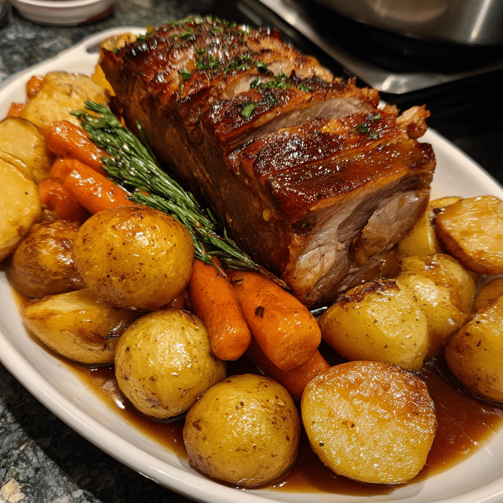 A boneless pork loin or pork shoulder works beautifully. Pork loin cooks leaner and slices neatly, while shoulder offers a richer, more tender finish.