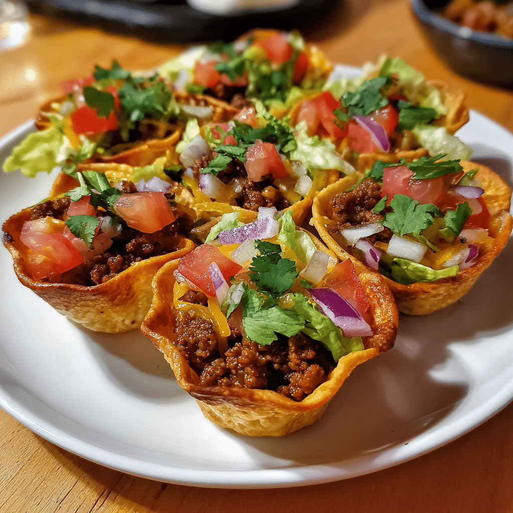 Quick and fun bite-sized taco cups made with crispy shells, seasoned beef, and melty cheeseโperfect for parties, snacks, or an easy weeknight meal.