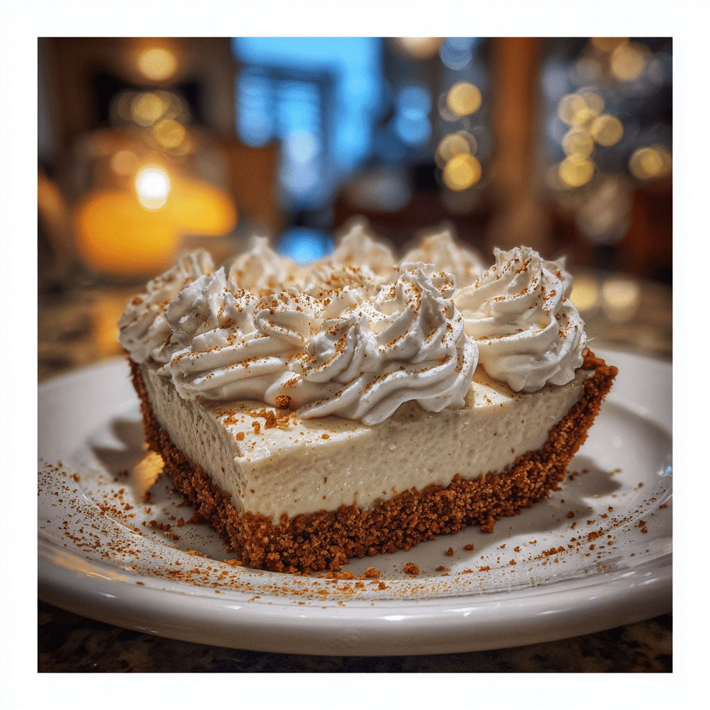 Eggnog Pie with Gingerbread Crust is a festive, elegant dessert that brings classic holiday flavors together in a creamy, memorable form. With its make-ahead convenience and unmistakable seasonal character, it is a perfect addition to Christmas celebrations and winter gatherings.