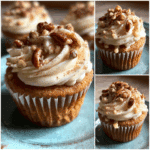 - Frost cooled cupcakes and top with additional pecans if desired.