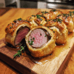 Mini beef Wellington bites are the perfect combination of elegance and comfort — buttery puff pastry, tender seared beef, and a rich mushroom filling wrapped into an irresistible appetizer. These little bites make any holiday or special occasion feel elevated, and they’re surprisingly simple to prepare. Whether you’re hosting a festive dinner party or preparing a beautiful appetizer spread, this recipe is sure to impress your guests with its flavor, texture, and stunning presentation. Enjoy watching them disappear one by one — they truly are unforgettable.