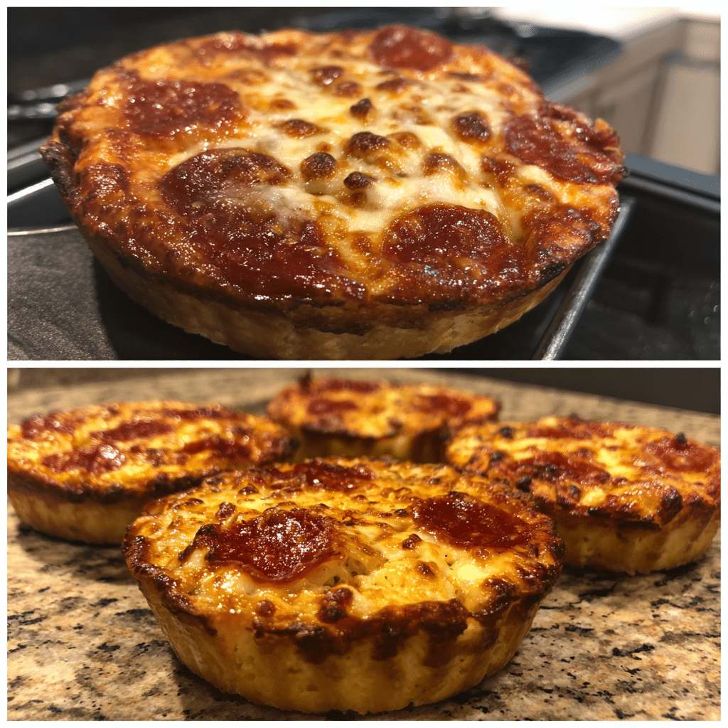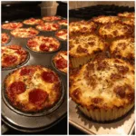 Savory pizza cupcakes made with biscuit or pizza dough, filled with sauce, cheese, and toppings, then baked in a muffin tin for a fun, handheld twist on traditional pizza.