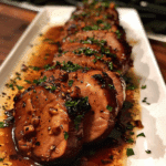 Pork tenderloin with apple cider is a comforting, elegant dish that captures the essence of fall in every bite. The pork is seared to perfection, then roasted in a sweet and tangy apple cider glaze that caramelizes beautifully as it cooks. The sauce — infused with apple cider, Dijon mustard, and herbs — creates the perfect harmony of savory richness and autumn sweetness. I first made this recipe on a chilly evening when I wanted something cozy yet refined, and it instantly became a seasonal favorite. Whether served for Sunday dinner or a special holiday meal, this dish is simple to prepare, full of flavor, and guaranteed to impress.