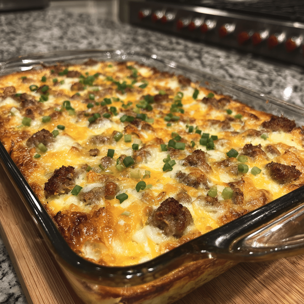 This casserole is rich, creamy, and satisfying. It can be prepared ahead of time, feeds a crowd easily, and combines familiar breakfast flavors into one dependable dish that bakes evenly every time.