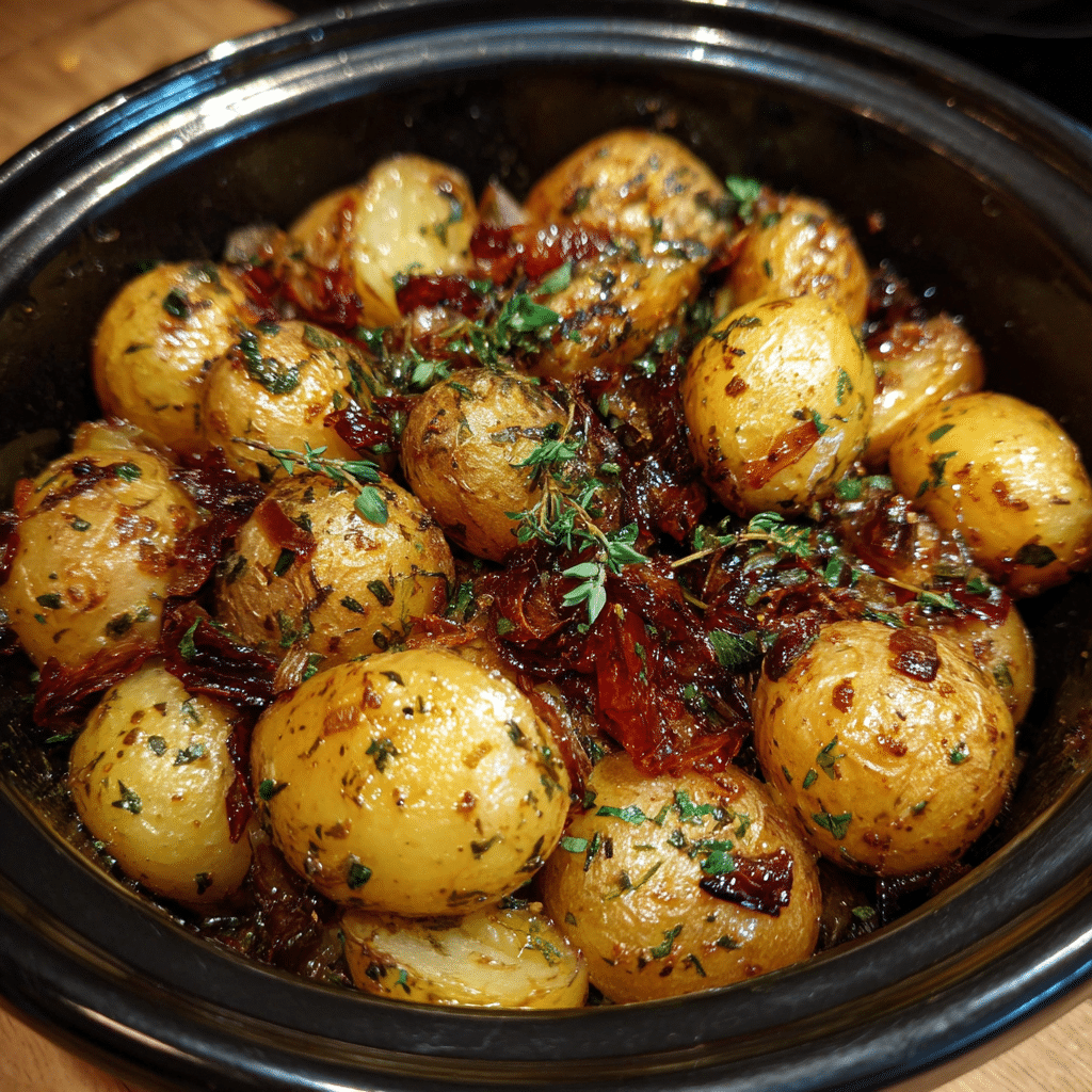 Cover the slow cooker and cook on low for 5–6 hours or high for 3–4 hours, until the potatoes are fork-tender and aromatic. Avoid stirring too often to prevent breaking them apart.