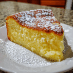 A light and dreamy vanilla custard cake that magically forms three distinct layers—fluffy sponge on top, silky custard in the middle, and a soft, dense base—using one simple batter.
