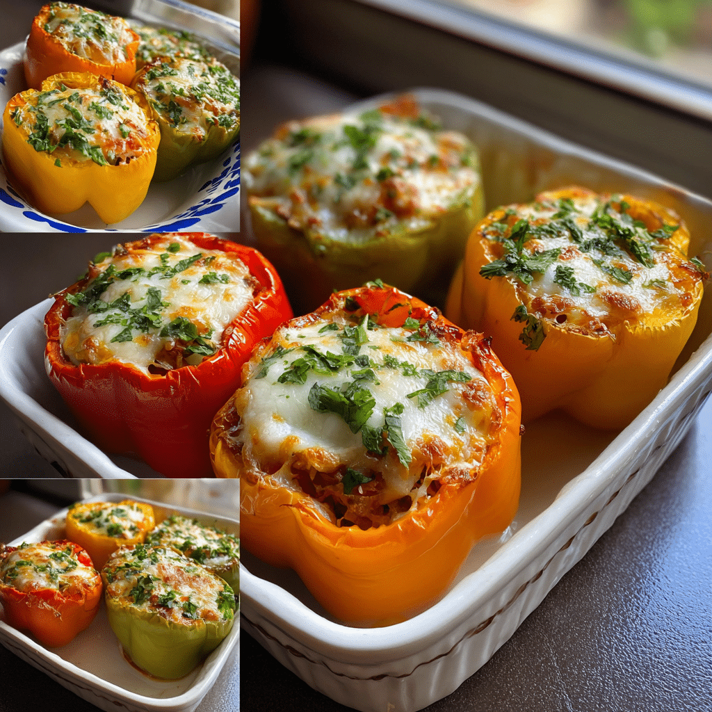 Bell peppers act as both the vessel and a key ingredient, adding sweetness, color, and structure to the dish.